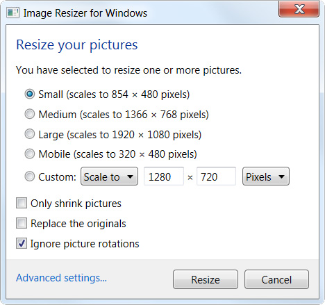 Indien u op Windows snel één of meerdere foto's wilt verkleinnen kunt u gebruik maken van een zeer eenvoudig programma Image Resizer for Windows.